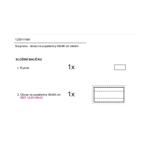 Jednorázová sterilní souprava určená k ošetření popálenin při operacích a převazech.